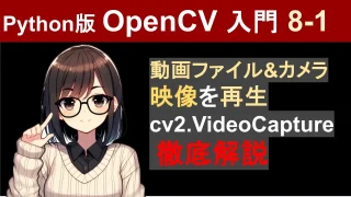OpenCV 【Python/OpenCV】cv2.VideoCaptureで動画ファイル・Webカメラ映像の読み込みと再生 Python版OpenCVで動画ファイル・カメラの読み込んで画面に再生・表示させる方法をソースコード付きで解説します。 2019.09.08 OpenCV